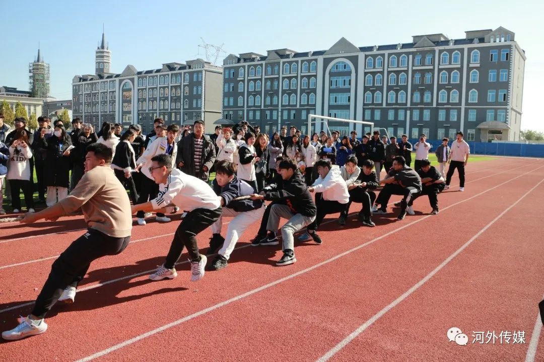 在班级拔河赛结束以后,老师们之间也进行了一场拔河比赛,将整场比赛的气氛带至最高点。老师们拼尽全力的模样也极大的鼓舞着同学们,充分体现了河外精神。
